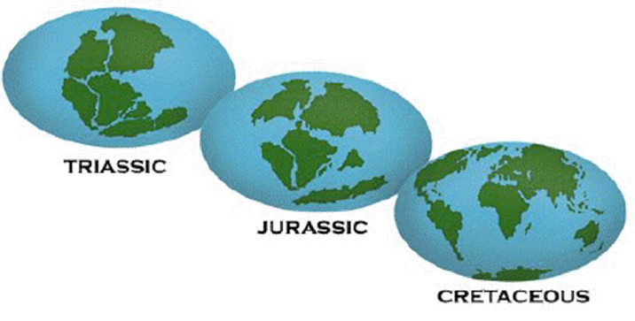 Ekkor indult az észak- és dél-amerikai szárazföldek elkülönülése a Pangeától. Kezdetét vette az Atlanti-óceán medencéjének kinyílása, valamint a Tethys-óceán bezáródása. Ehhez kapcsolódóan a jura időszak alatt jelentős vulkáni működés zajlott. Az időszak a francia–svájci határon fekvő Jura-hegységről kapta a nevét, ahol a fosszíliadús jura kori kőzetek rengeteg tengeri ősmaradványt, például ammoniteszeket tartalmaznak.