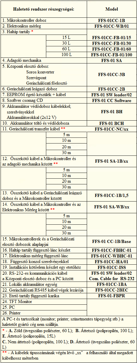 Különös tekintettel arra a körülményre, hogy egy rendszerbe maximum 93 darab etetőt is lehet integrálni. Az adagolás pontossága 1 gramm.