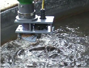 A fenti képek a cég nyílt vízi áramlásmérőjének kalibrálást mutatják. Erre a fejlesztésre azért volt szükség, mert a halak étkezés után elbágyadtak és az áramló víz elsodorta őket, minek következtében összetorlódtak a medence felső kifolyó rácsánál, nem kaptak megfelelő mennyiségű oxigént majd elpusztultak. Amennyiben a készülék érzékeli az áramlás csökkenését elindítja a központi riasztó rendszert.